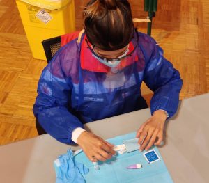 Il est prévu qu’un « piqueur » puisse réaliser en moyenne un test toutes les trois minutes. Ce matin, cette opératrice avait réalisée une quinzaine de tests.
